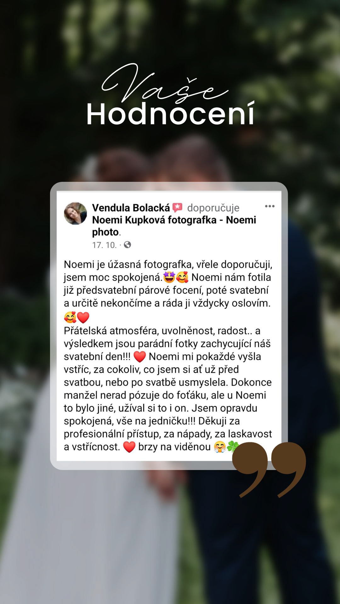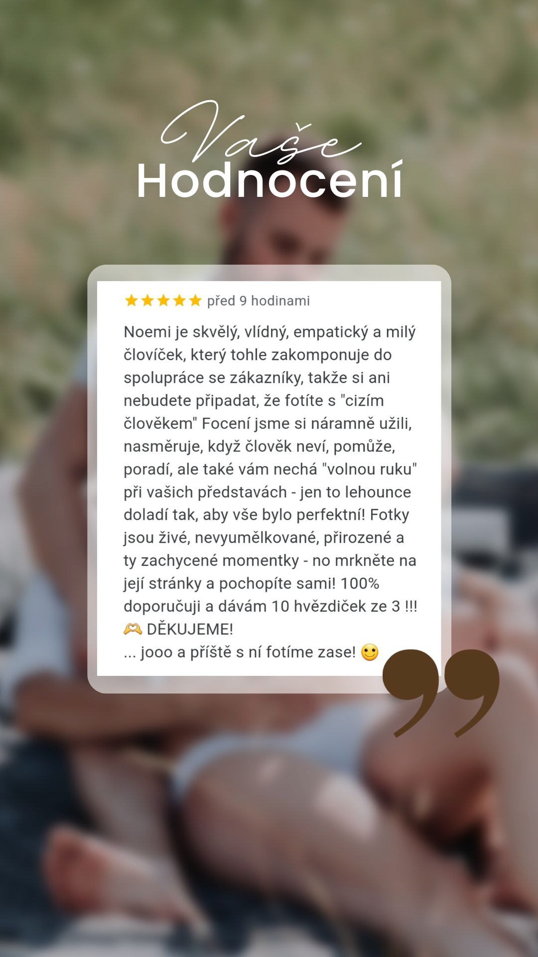 Hodnocení od mých skvělých klientů. Moc vám děkuji!
